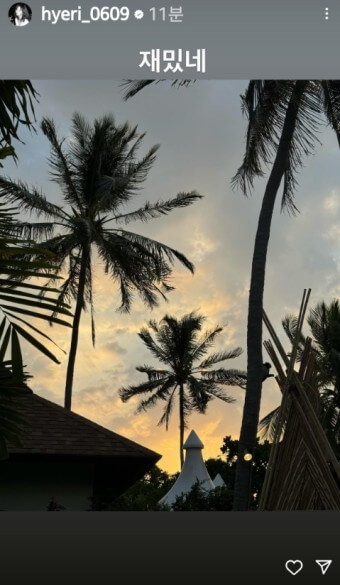 이러한 보도가 나온 후 혜리는 설명없이 자신의 인스타그램에 노을이 지는 하늘을 배경과 한 야자수 사진을 올리며 “재밌네”라는 글을 남겼다.